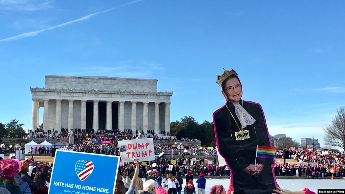 Udara dingin tidak menyurutkan ribuan perempuan memadati Reflecting Pool yang terletak diantara Lincoln Memorial dan Monumen Nasional di Washington D.C., untuk mengikuti “Women’s March,” Sabtu (20/1).
