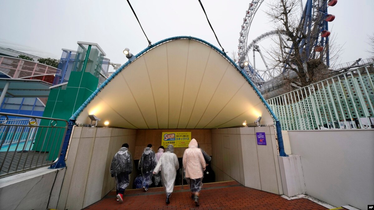 Pengeras suara mengeluarkan peringatan yang menakutkan itu di sebuah taman hiburan di Tokyo.