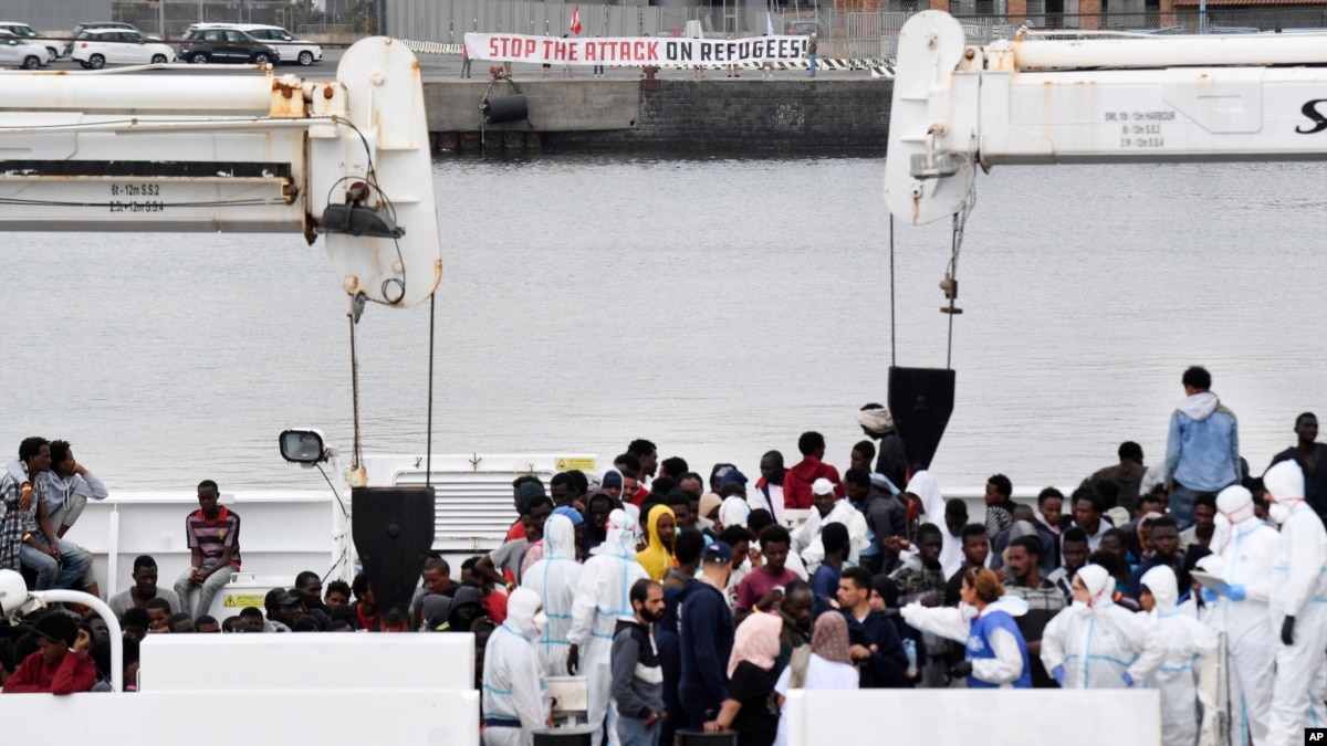 Italia dan Malta menolak masuk kapal penangkap ikan yang penuh migran itu merapat di bandara mereka, Jumat (13/7). Sabtu pagi (14/7), pihak berwenang Italia memindahkan para migran itu ke sebuah kapal penyelamat dari Frontex atau badan patroli perbatasan Uni Eropa dan sebuah kapal lain milik kepolisian perbatasan Italia.