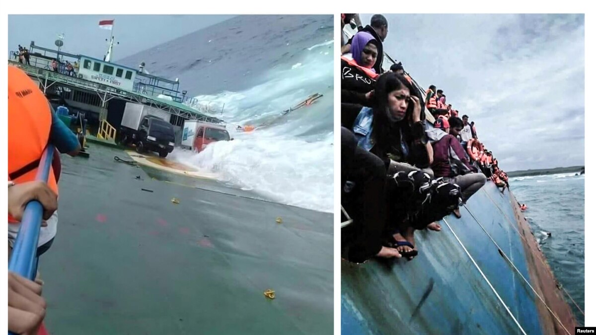 Feri tersebut juga sedang membawa 48 kendaraan ketika tenggelam karena cuaca buruk.