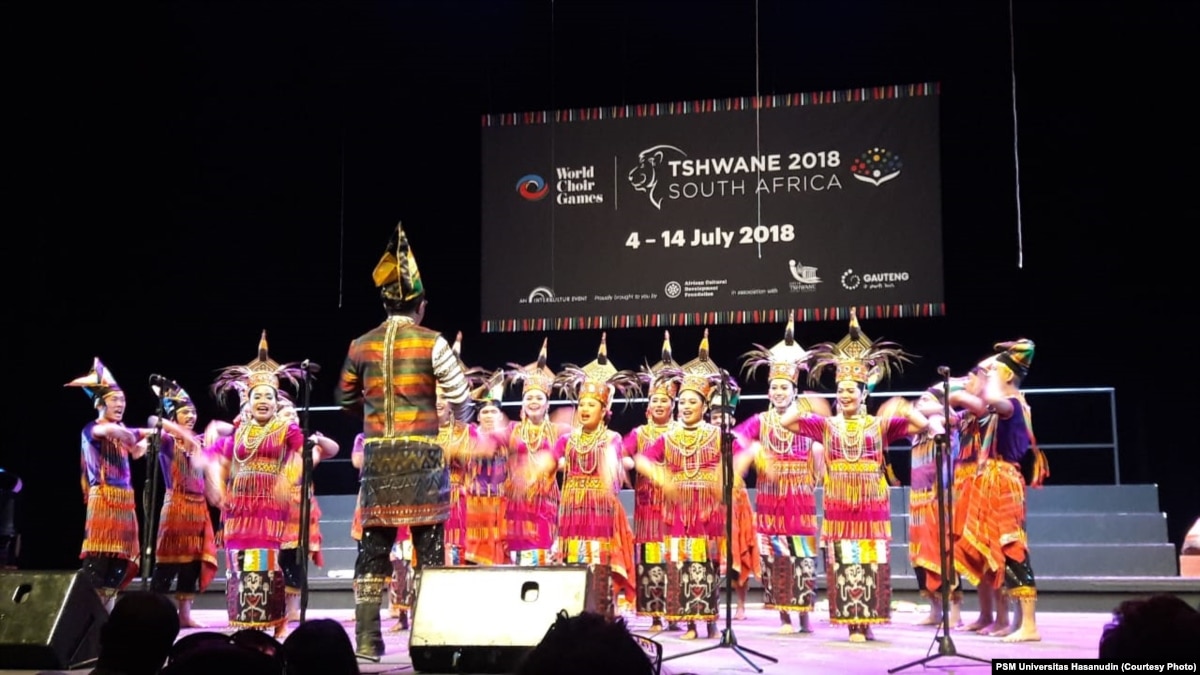 Paduan Suara Universitas Hasanuddin Makassar memenangkan kejuaraan paduan suara sedunia “World Choir Game Tshwane 2018” yang diselenggarakan di Pretoria, Afrika Selatan, Sabtu (7/7).