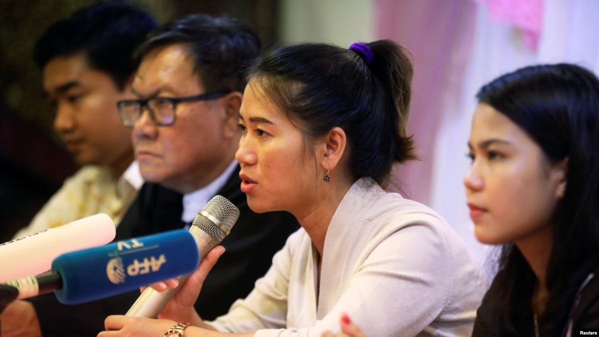 Pan Ei Mon (istri Wa Lone) bersama Chit Su (istri Kyaw Soe Oo) mengadakan konferensi pers di Yangon, Selasa (4/9), satu hari setelah suami mereka dinyatakan bersalah oleh seorang hakim karena melanggar UU Rahasia Negara yang telah berusia 85 tahun dan dihukum tujuh tahun penjara.