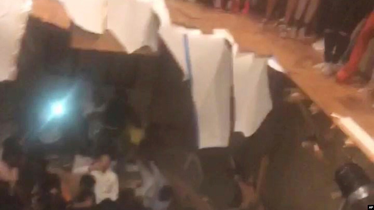 Video di berbagai media sosial menunjukkan sebagian besar lantai satu yang dipadati orang yang sedang berdansa ambruk, menimpa puluhan orang di lantai bawah.