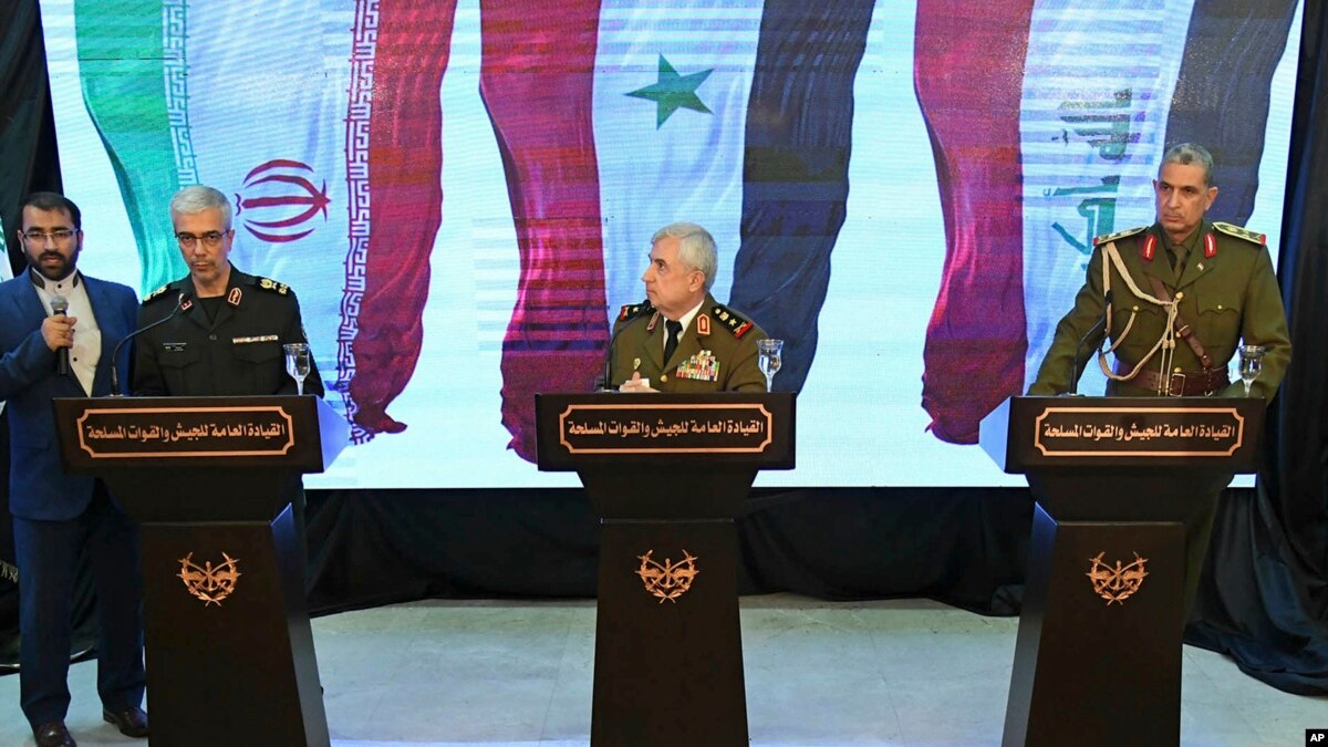 Jenderal Ali Abdullah Ayoub hari Senin (18/3) berbicara di ibu kota Damaskus, selama konferensi pers bersama yang jarang dilakukan dengan komandan militer Iran dan Irak yang sedang berkunjung ke Suriah.