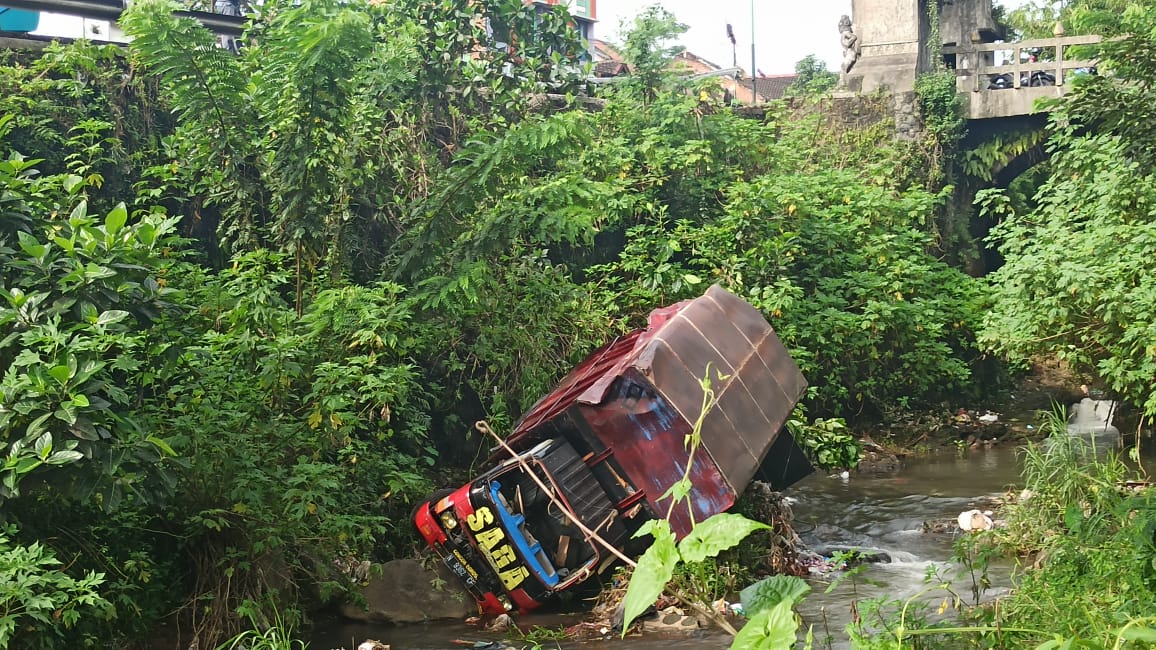 Diseruduk dari Belakang, Truk Angkut Snack Nyemplung Sungai di Purwodadi - wartabromo